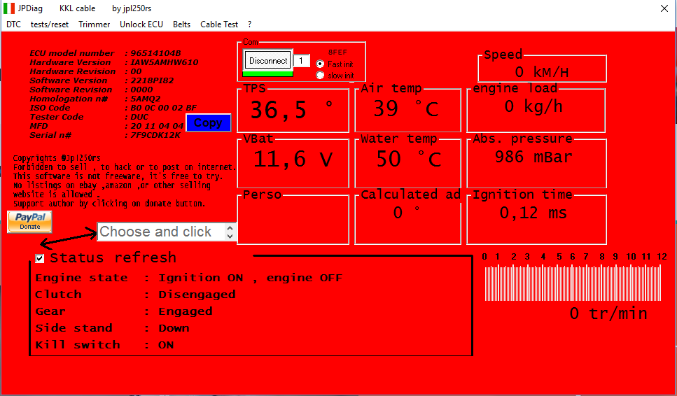 - Check ignition , injection with no other tools